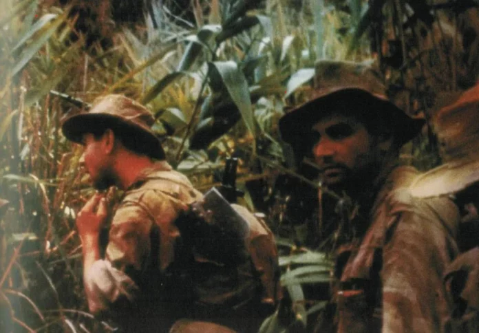 GAP 2 avec 1er BEP et 5e BPVN : mission de reconnaissance de la région Sud-Ouest de la cuvette. Déceler des implantations VM vers le village de Ban Huoi Phue à 3 km Sud-Ouest ISABELLE.