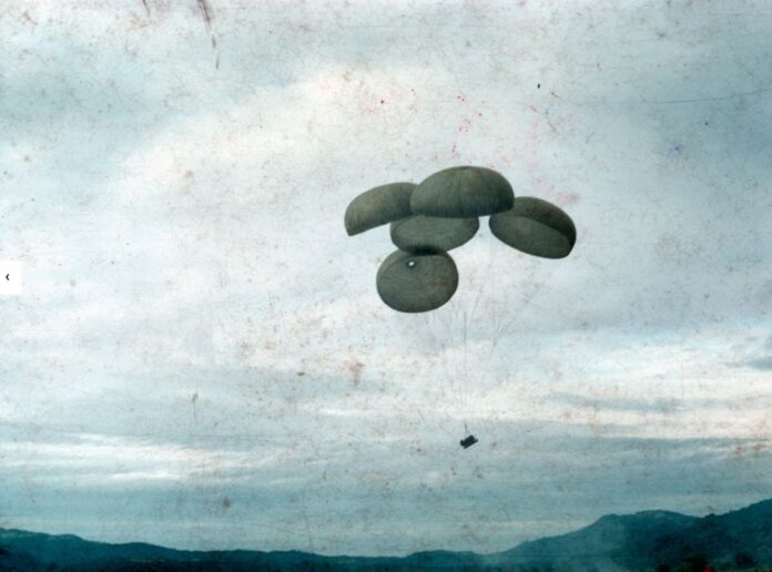 100 tonnes de fret sont larguées dont 37,5 tonnes assurées par le S/GMMTA par 40 avions dont 15 militaires se succédant par section de 3 à 20 minutes d’intervalle.